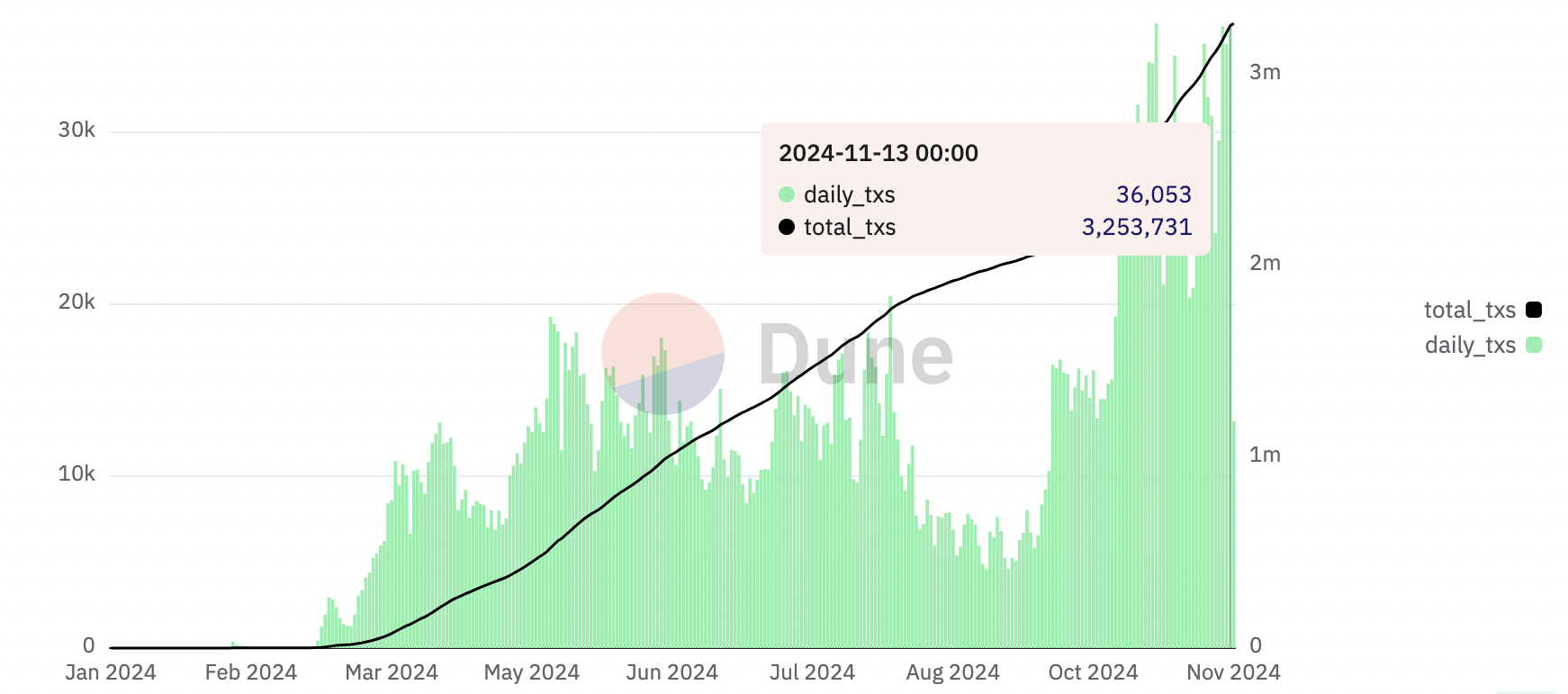 Dữ liệu bổ sung do bảng điều khiển Pump.fun của Dune Analytics cung cấp cho thấy mức tăng giá của SOL vào ngày 14 tháng 11 nói riêng đã diễn ra sau sự gia tăng mạnh về số lượng giao dịch được triển khai trên mạng.