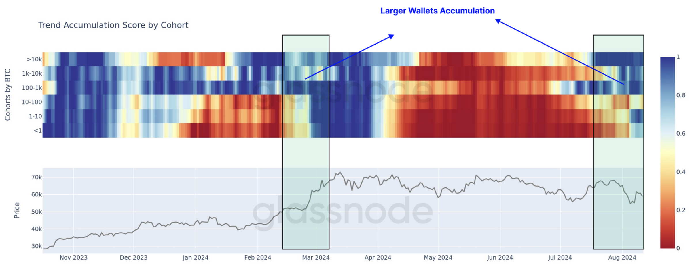 Sử dụng Accumulation Trend Score (ATS), một số liệu đánh giá sự thay đổi cân bằng có trọng số trên toàn thị trường, Glassnode nhận thấy rằng chỉ báo này ghi nhận giá trị cao nhất có thể là 1,0. Điều này cho thấy đã có sự tích lũy đáng kể trong suốt bốn tuần qua.
