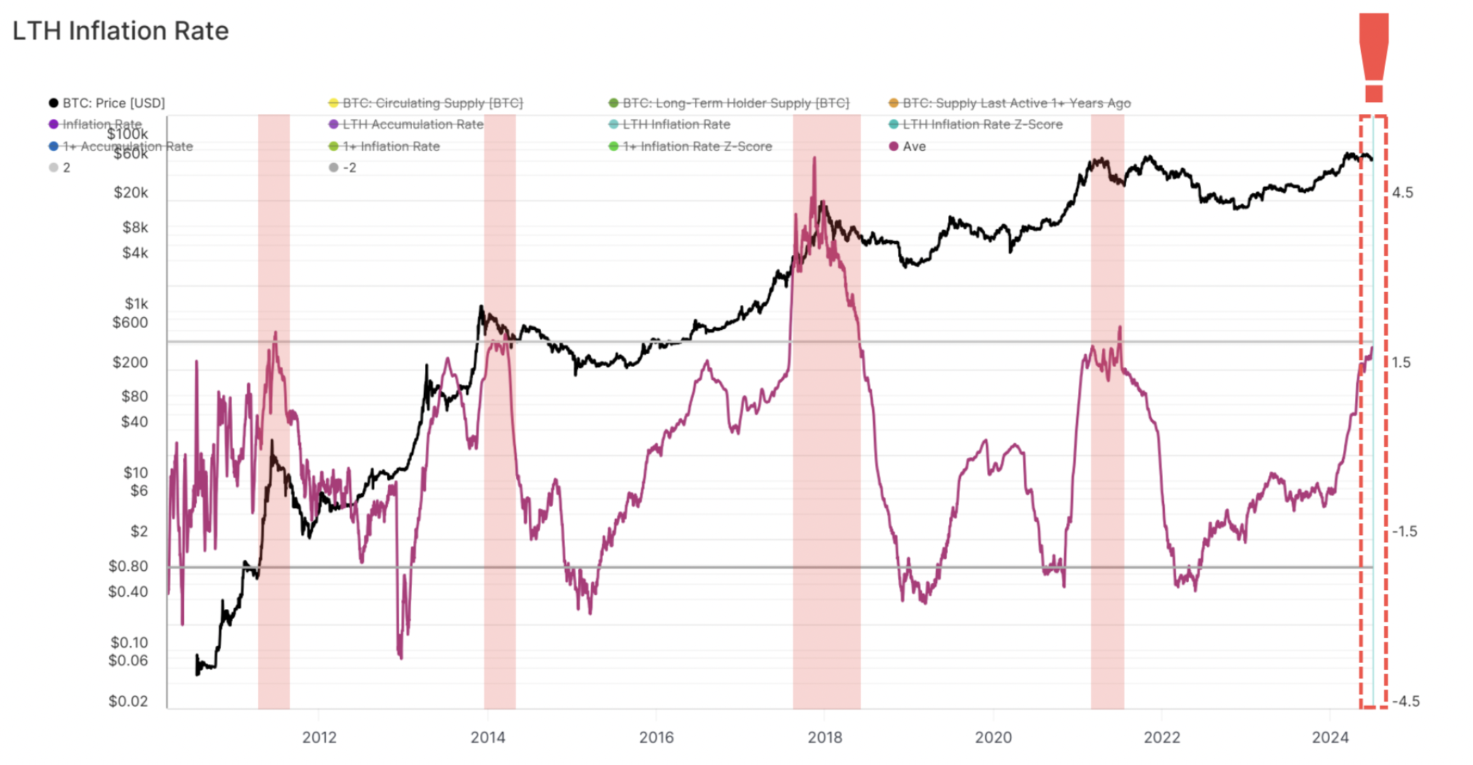 Tỷ lệ lạm phát của người nắm giữ Bitcoin dài hạn đang tiến gần đến ngưỡng quan trọng