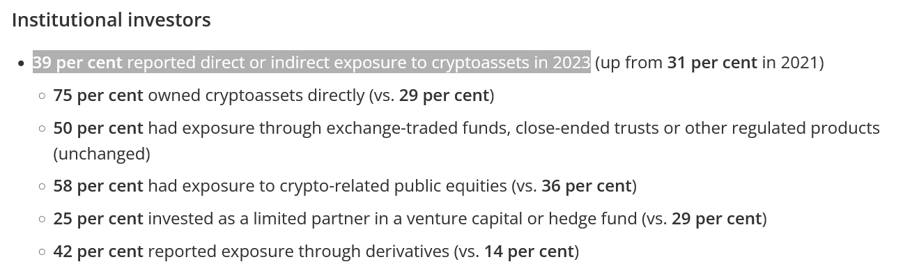 Gần 40% nhà đầu tư tổ chức cho biết họ có tiếp xúc trực tiếp hoặc gián tiếp với tài sản tiền điện tử vào năm 2023 – tăng từ 31% trong nghiên cứu năm 2021 của KPMG, theo báo cáo ngày 24 tháng 4.