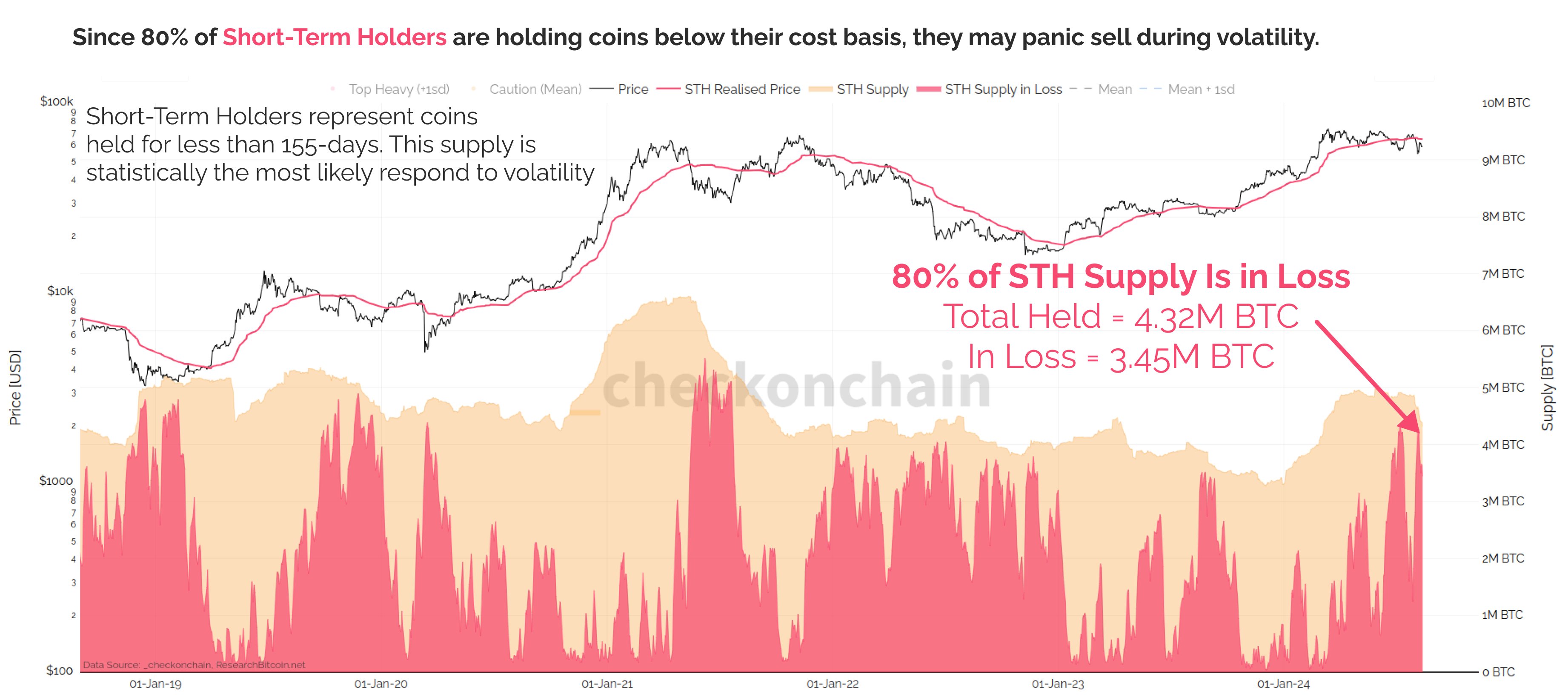 Ông cảnh báo rằng điều này có thể dẫn đến những bất lợi hơn nữa nếu họ hoảng loạn bán tháo như những năm trước. Những người nắm giữ BTC ngắn hạn là những người nắm giữ trong thời gian ngắn hơn 155 ngày.