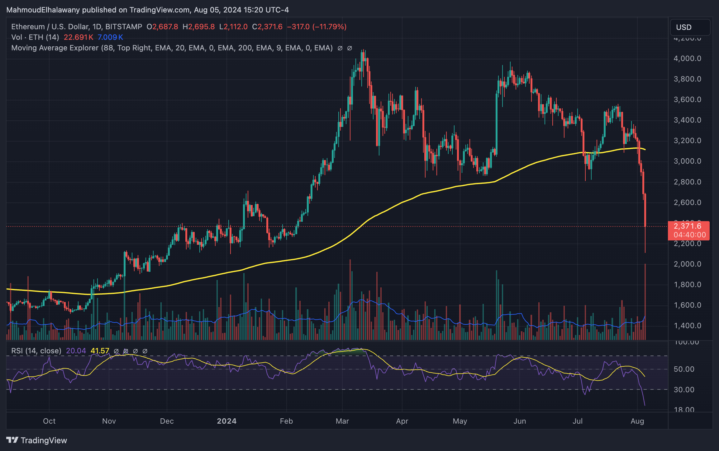 Ether đã gặp phải áp lực bán đáng kể phần lớn là do Jump Crypto bán khoảng 130.000 ETH, trị giá 290 triệu USD tại thời điểm viết bài, ra thị trường. Điều này khiến Ether giảm xuống mức thấp khoảng 2.100 USD vào ngày 5 tháng 8.