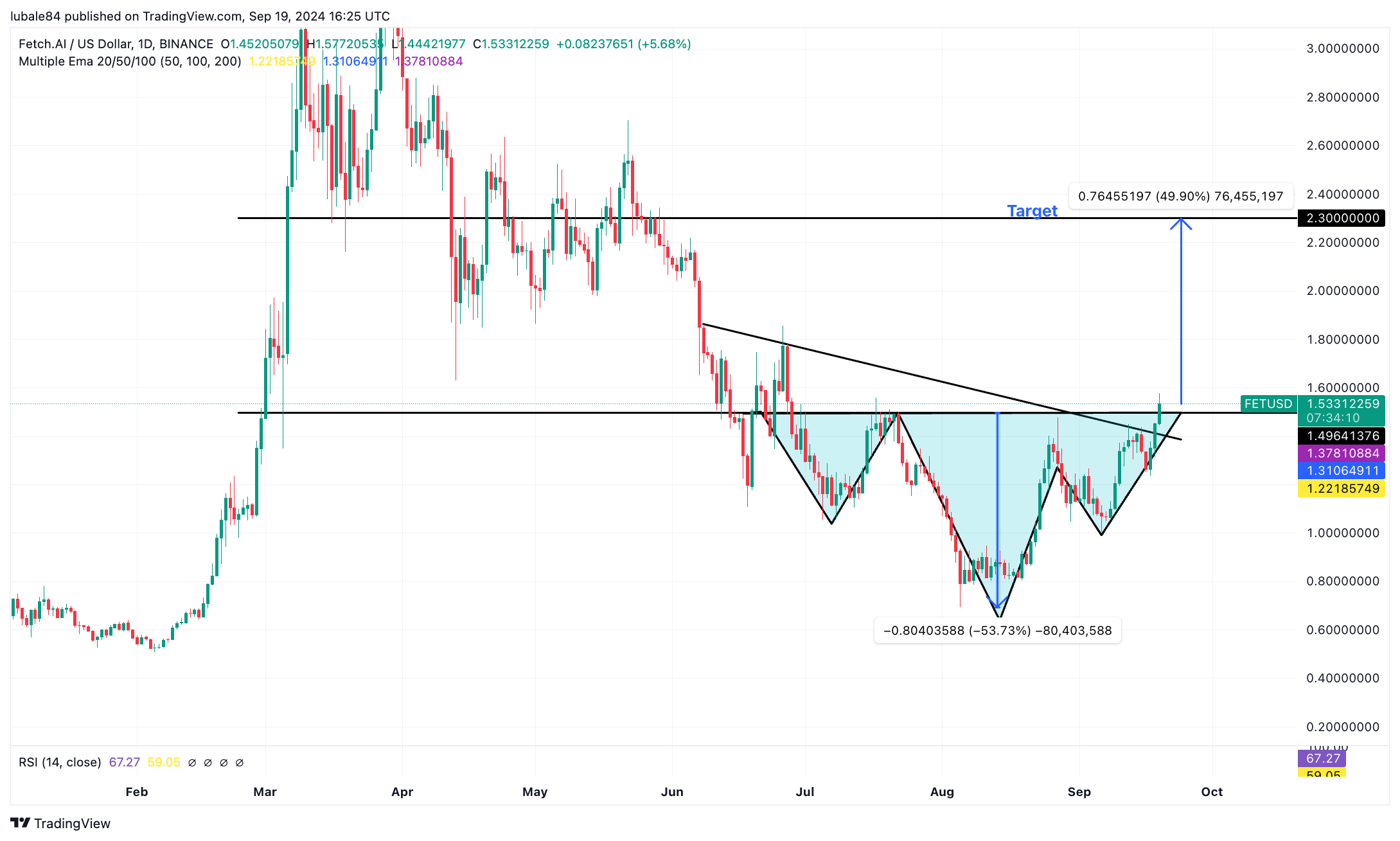 Nhà phân tích Nebraskangooner giải thích rằng giá FET đã thoát khỏi mô hình đầu và vai ngược (IH&S), cho thấy một động thái tăng mạnh nếu các ngưỡng kháng cự chính bị phá vỡ.