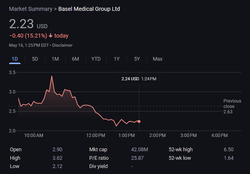 Cổ phiếu của Basel Medical Group đã giảm khoảng 15% sau khi công ty chăm sóc sức khỏe này thông báo kế hoạch mua 1 tỷ USD Bitcoin cho quỹ công ty của mình.