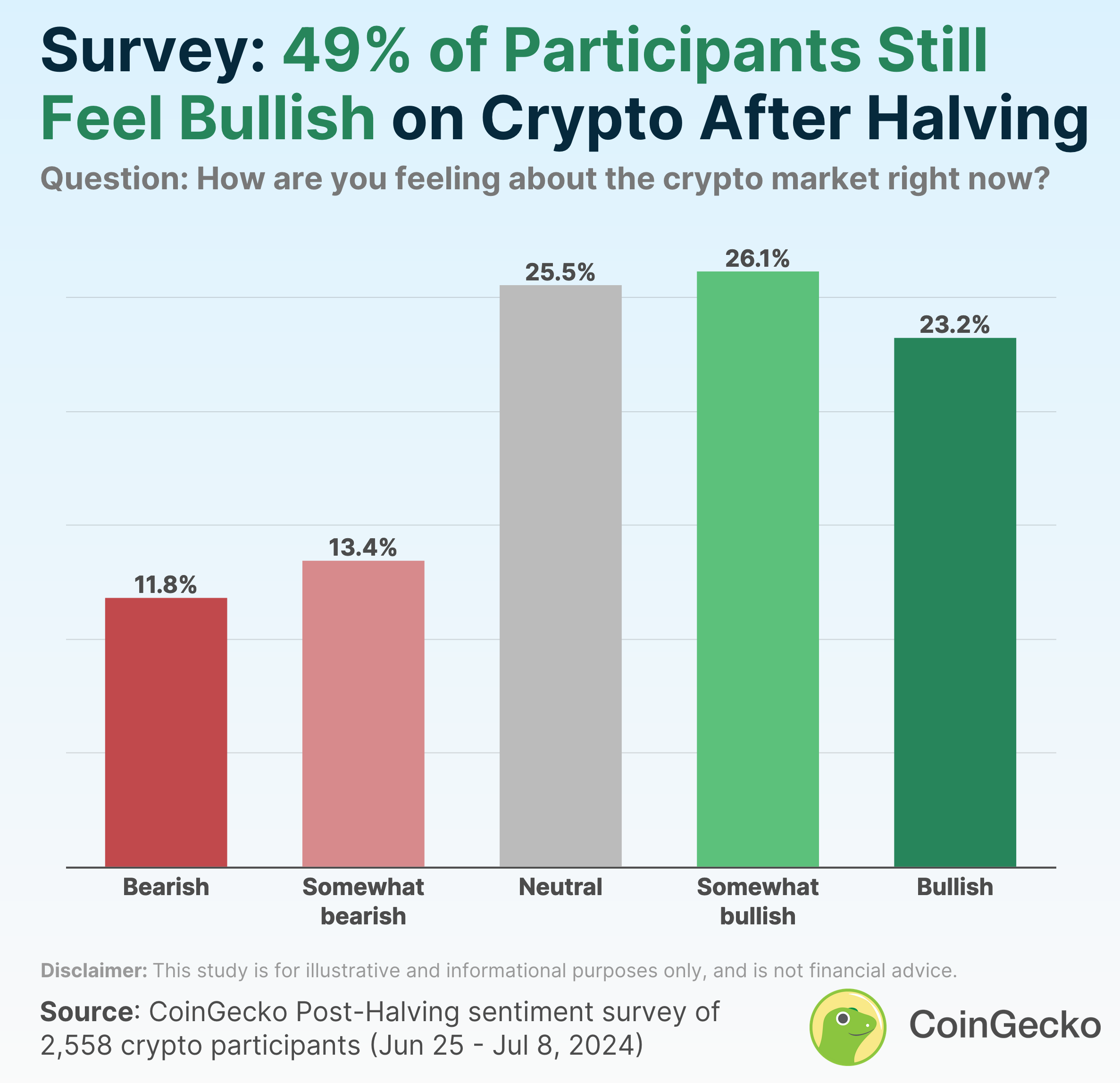 Một cuộc khảo sát của CoinGecko với hơn 2.500 người được thực hiện trong hai tuần qua đã tiết lộ rằng chỉ có khoảng một nửa số nhà đầu tư tiền điện tử và người theo dõi đang “lạc quan” về thị trường tiền điện tử tại thời điểm hiện tại.