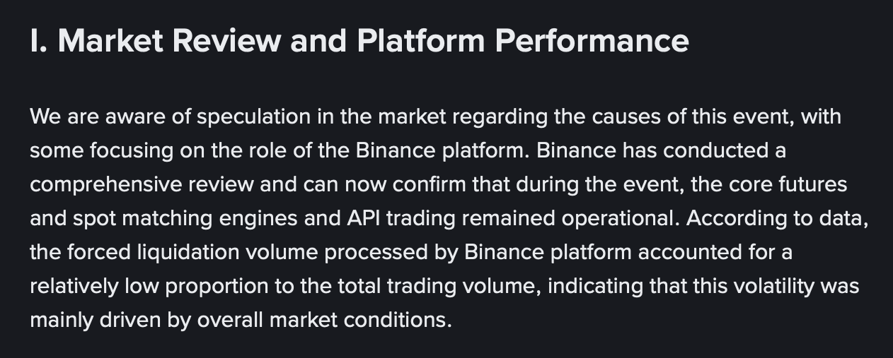 Công ty cũng lưu ý rằng việc thanh lý bắt buộc trên nền tảng của họ chỉ chiếm một phần nhỏ trong tổng hoạt động của thị trường, cho thấy sự biến động chủ yếu là do điều kiện thị trường rộng hơn chứ không phải do trục trặc nội bộ.