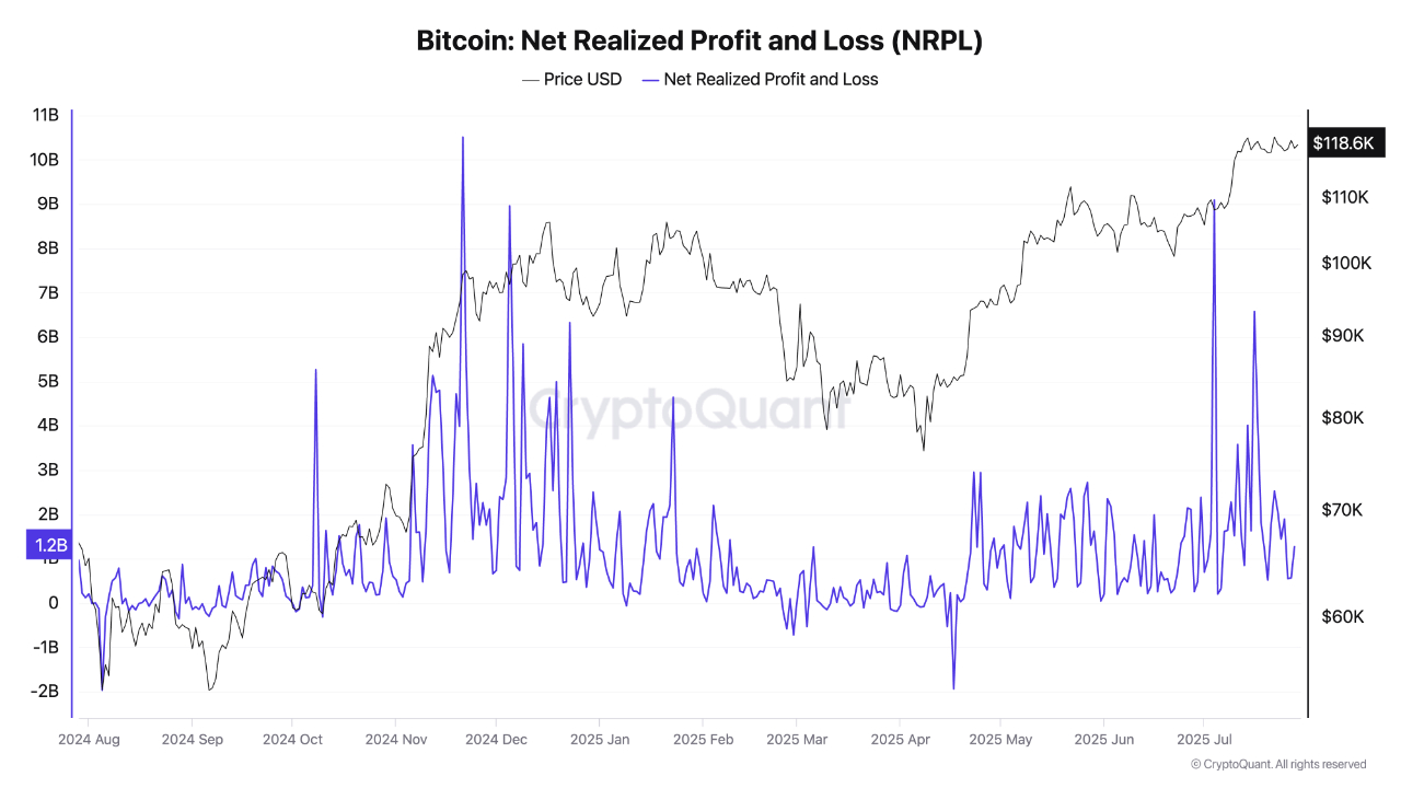 Lợi nhuận và lỗ ròng thực tế của Bitcoin. Nguồn: CryptoQuant.