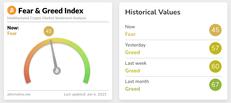 Các dòng tiền rút ra diễn ra khi Chỉ số Sợ hãi & Tham lam đối với tiền mã hóa chuyển từ mức “Tham lam” sang “Sợ hãi” vào ngày 6 tháng 6, nhiều khả năng do mối quan hệ vốn thân thiết giữa Trump và Musk bị rạn nứt, được thể hiện qua nhiều bài đăng bùng nổ trên mạng xã hội.