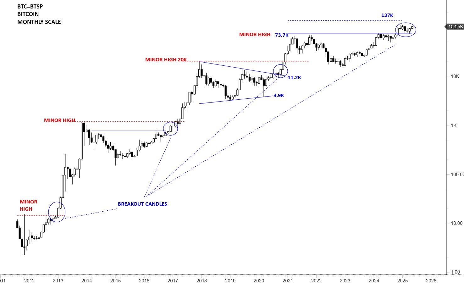 Biểu đồ kèm theo so sánh tháng 11 năm 2024 với các sự kiện “breakout” tương tự trong quá khứ, với Kibar khẳng định lại mục tiêu 137.000 USD mà ông đã đưa ra trước đó.
