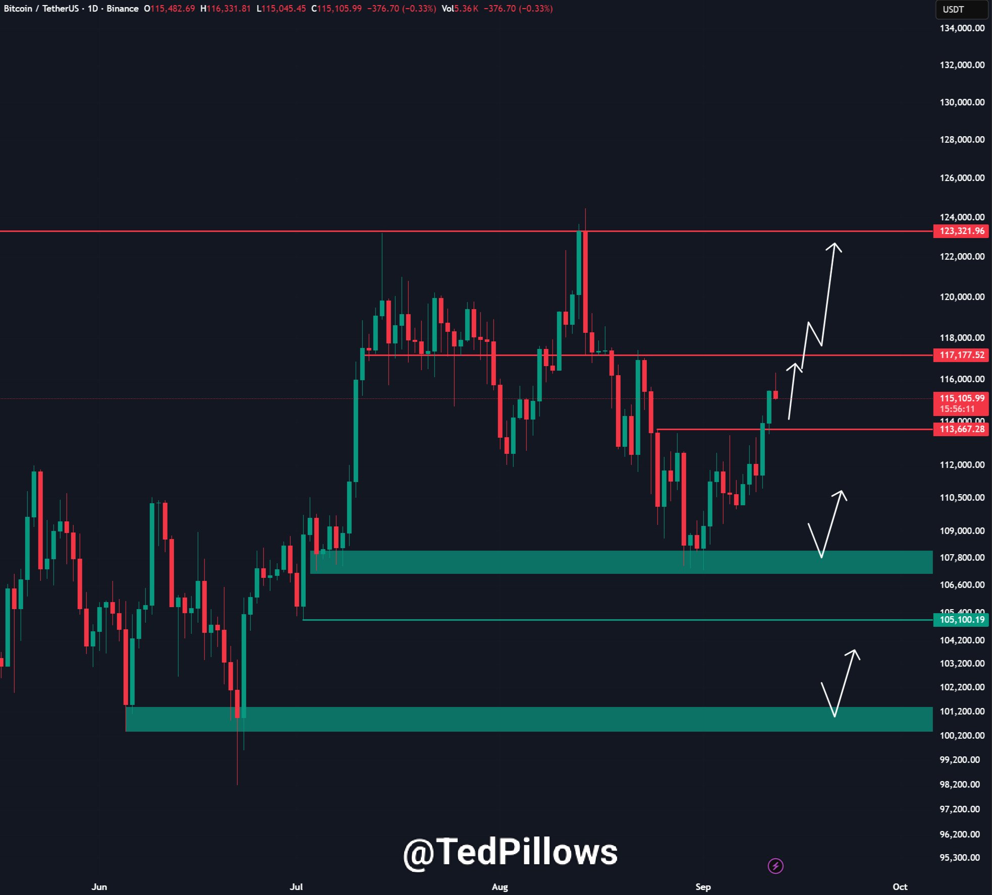 Nhà đầu tư tiền điện tử và doanh nhân Ted Pillows đã lập luận trong một bài đăng trên X trước động thái này rằng: “Nếu BTC hoàn toàn lấy lại mức này, cánh cửa hướng tới ATH mới sẽ mở ra”.