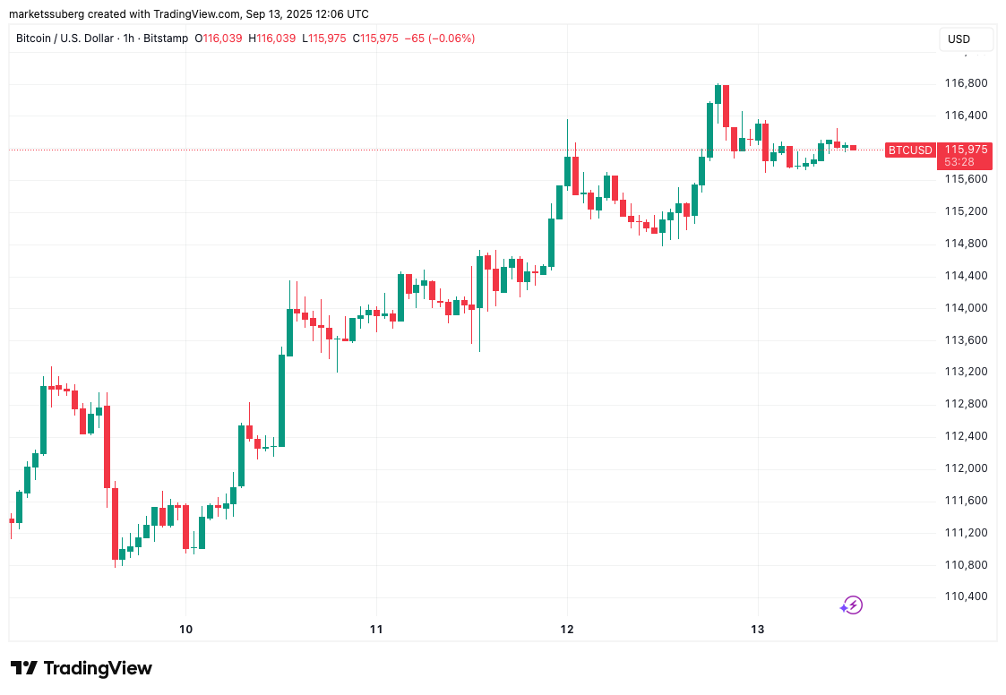 Dữ liệu từ TradingView cho thấy giá giao ngay BTC/USD đạt 116.800 USD trên Bitstamp.
