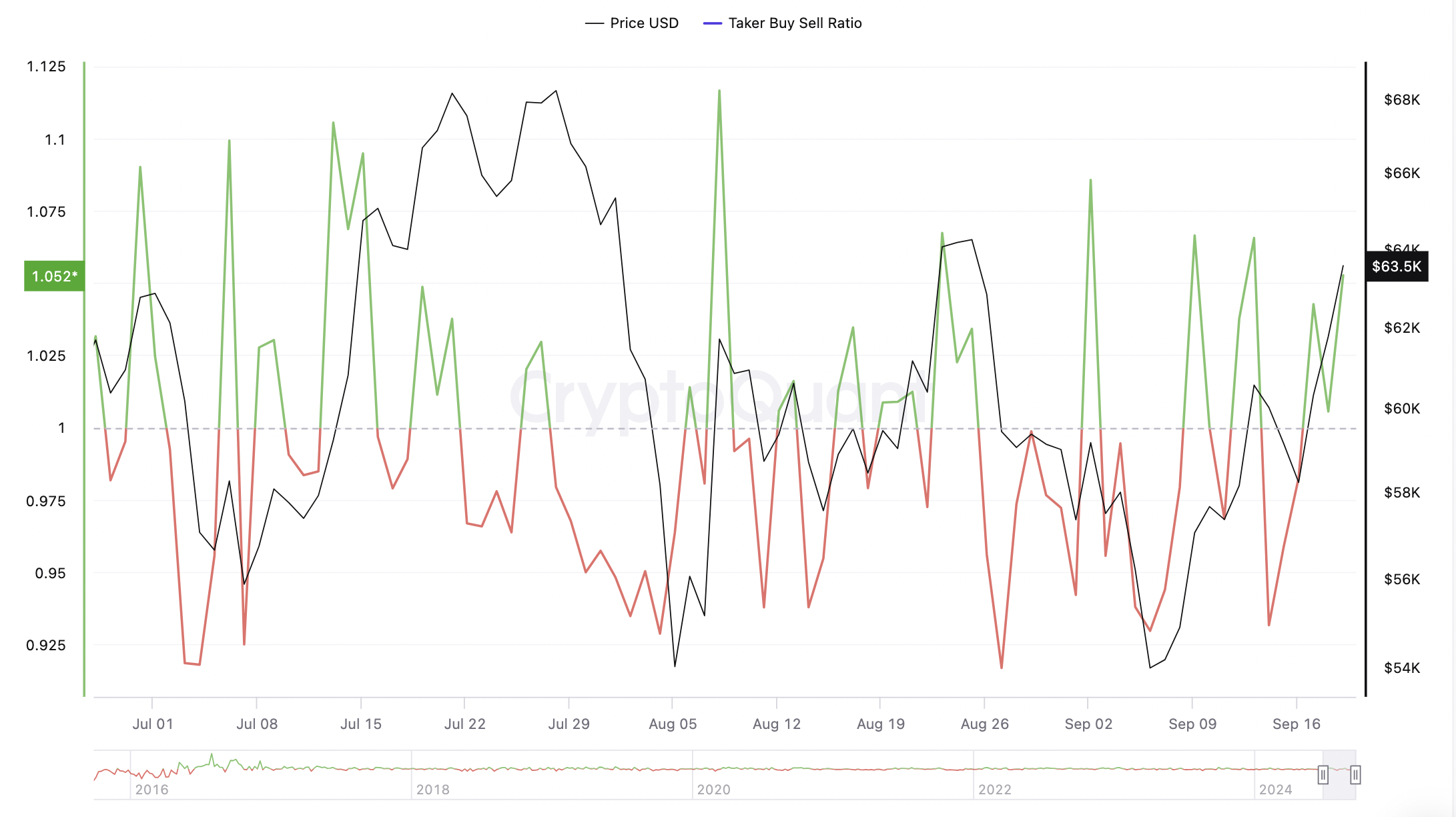 Dữ liệu bổ sung từ CryptoQuant cho thấy Tỷ lệ Taker Buy Sell tăng đột biến trên các sàn giao dịch tập trung (CEX).