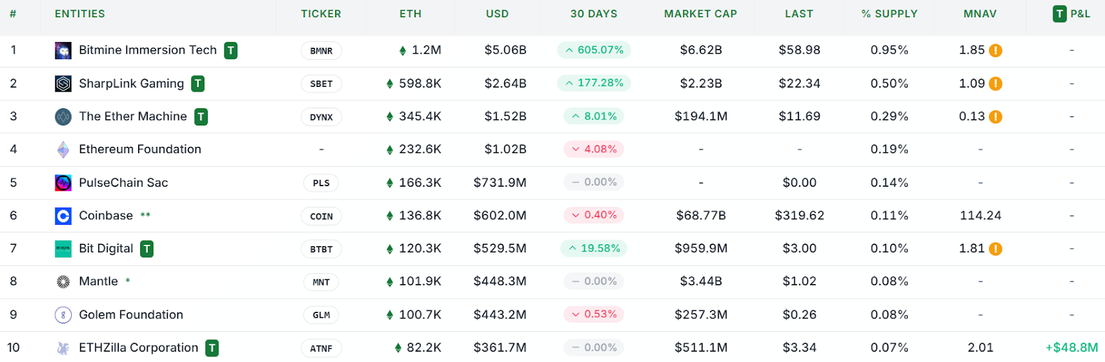10 công ty quản lý quỹ Ether hàng đầu. Nguồn: StrategicEthReserve.xyz.