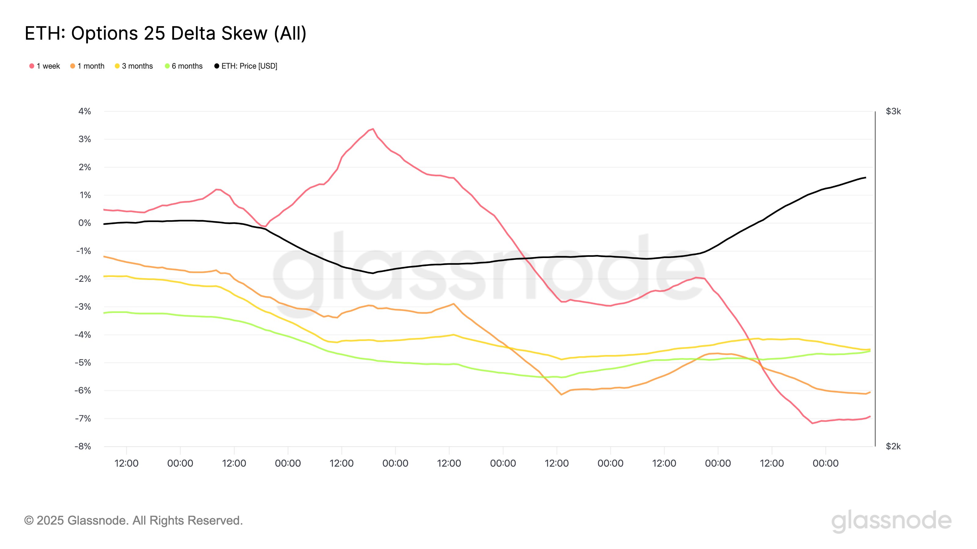 Tùy chọn ETH 25-delta skew (tất cả). Nguồn: Glassnode.