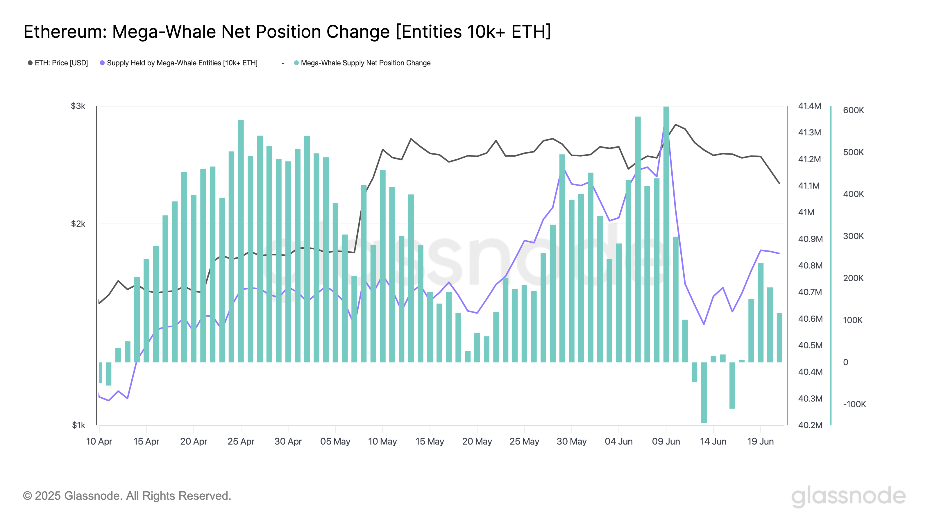 Vào ngày 21 tháng 6, những con cá voi khổng lồ này đã thu về hơn 116.893 ETH trị giá 265,30 triệu đô la, cho thấy họ coi sự sụt giảm này là cơ hội mua vào chứ không phải là động thái thoát lệnh.