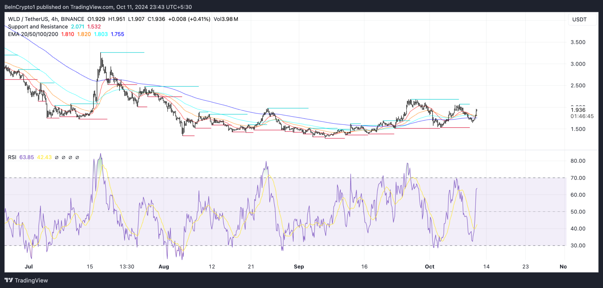 RSI cho WLD hiện ở mức 63,85, cho thấy tài sản đang tiến gần đến điều kiện mua quá mức, nhưng vẫn còn chỗ cho những đợt tăng giá tiếp theo. Để WLD quay trở lại mức 2,5 USD, điều cần thiết là phải vượt qua mức kháng cự chính ở mức 2,17 USD. Việc phá vỡ mức kháng cự này sẽ làm tăng khả năng đạt 2,5 USD, đây sẽ là mức giá cao nhất của WLD kể từ tháng 7.