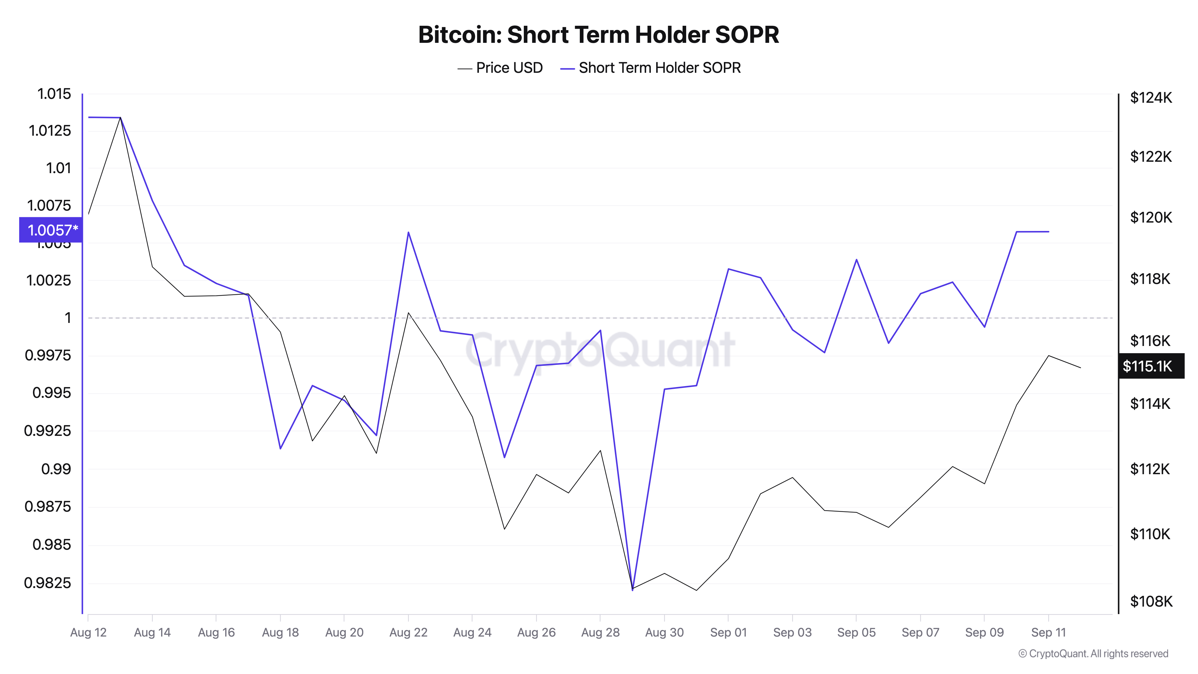 Dữ liệu từ CryptoQuant cho thấy tỷ lệ lợi nhuận đầu ra đã chi tiêu (SOPR) của nhóm nhà đầu tư này chỉ vừa mới bắt đầu chuyển sang dương vào hôm thứ Sáu, sau gần một tháng mà các đồng coin của STH được di chuyển on-chain trong trạng thái thua lỗ.