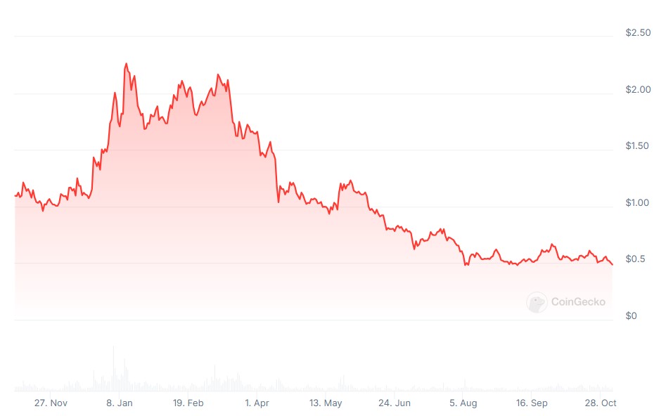 Biểu đồ giá 1 năm của Arbitrum. Nguồn: CoinGecko.