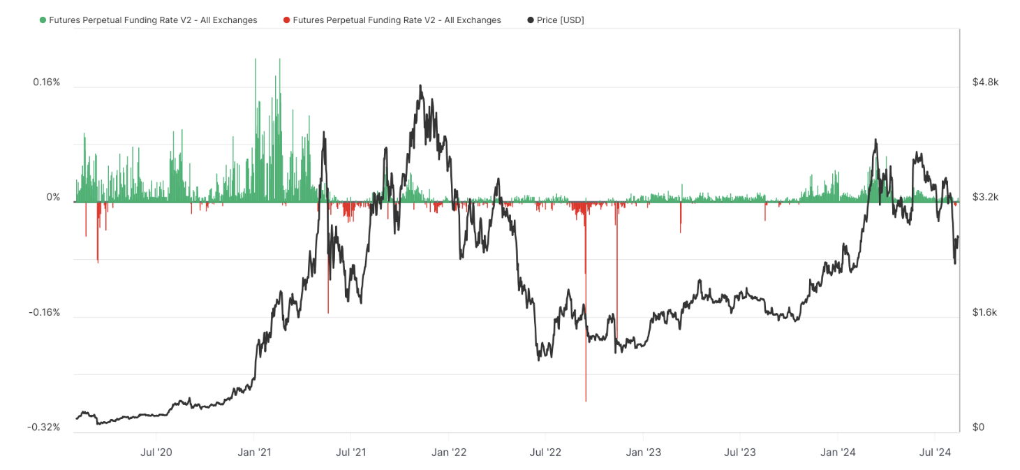 “Tỷ lệ tài trợ và mức giá giảm của Ethereum cho thấy xu hướng giảm giá”, nhà giao dịch độc lập John Morgan cho biết trong bài đăng ngày 15 tháng 8 trên X.