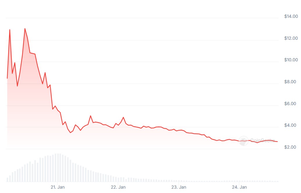 Biểu đồ giá cho token Melania. Nguồn: CoinGecko.