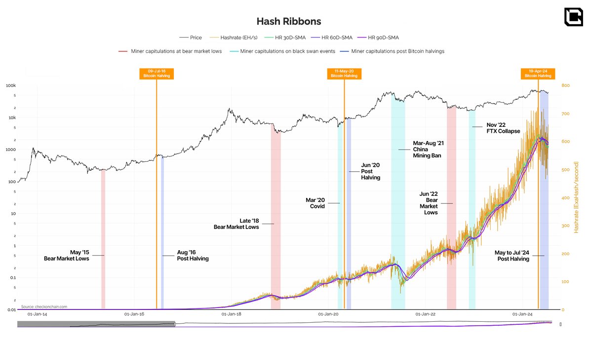 Hash ribbons của thợ đào Bitcoin. Nguồn: Cryptonary.