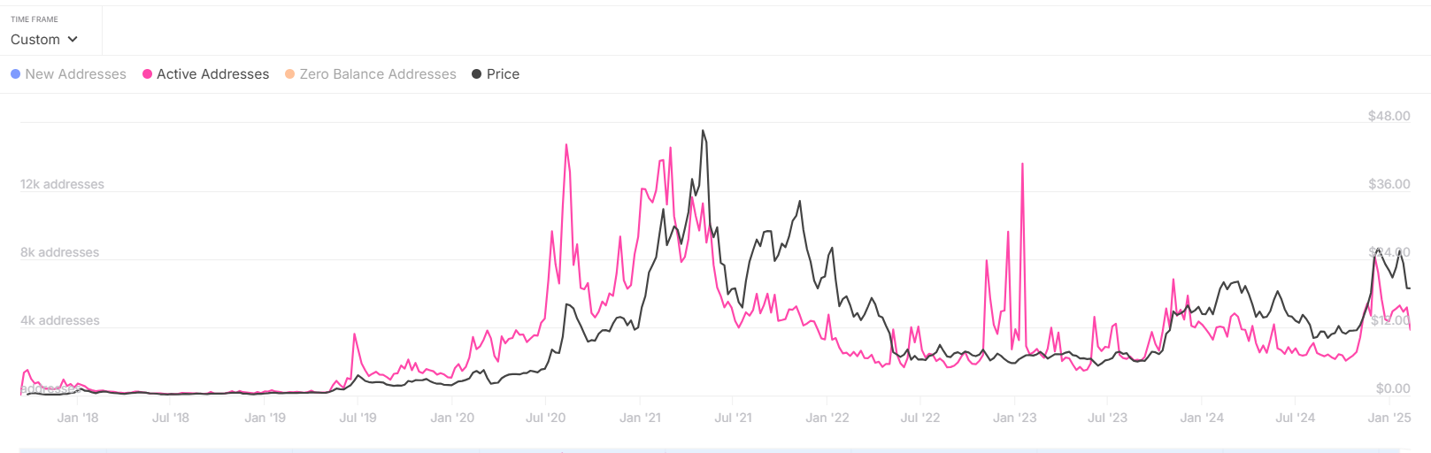 Số địa chỉ hoạt động hàng ngày trên mạng Chainlink đã giảm xuống còn 3.860 vào ngày 10 tháng 2, so với 11.280 địa chỉ vào ngày 3 tháng 5 năm 2021, khi token Chainlink (LINK) đạt mức cao nhất mọi thời đại là 46,71 USD.