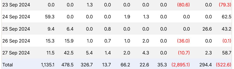 Theo Farside Investors, con số này bao gồm 494,4 triệu USD chảy vào vào ngày 27 tháng 9, ngày hoạt động tốt nhất kể từ ngày 4 tháng 6.