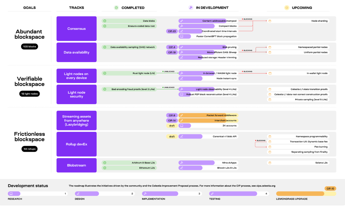 Mục tiêu cốt lõi của lộ trình là “không ngừng mở rộng quy mô lên các khối 1 gigabyte, mang lại sự gia tăng lớn về thông lượng dữ liệu cho hệ sinh thái rollup của Celestia”, Celestia cho biết.