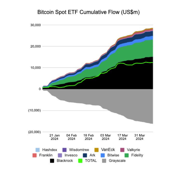 Nó cũng chứng kiến dòng vốn chảy ra cao nhất so với tất cả các đối thủ cạnh tranh kể từ khi chuyển đổi vào giữa tháng 1, với dòng vốn ròng là 16,1 tỷ USD tính đến ngày 11 tháng 4, theo dữ liệu của Farside.