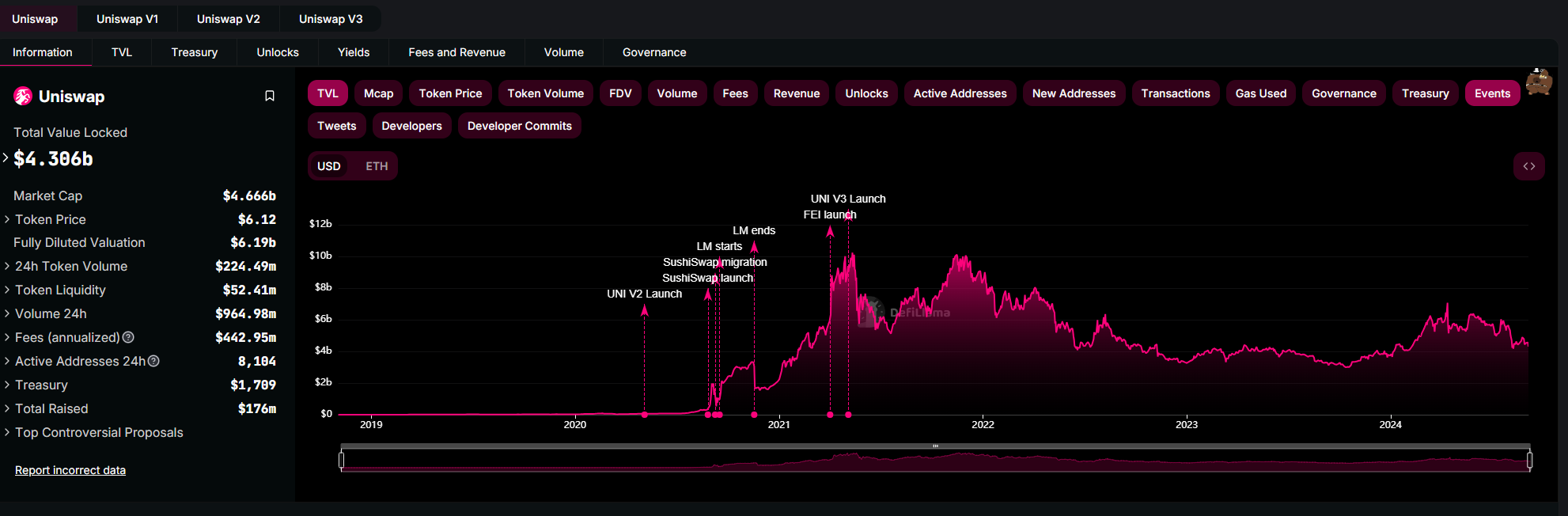 Uniswap là một trong những giao thức DeFi phổ biến nhất, tạo điều kiện cho việc hoán đổi token trên hơn mười mạng lưới blockchain. Tính đến ngày 4 tháng 9, Uniswap có tổng giá trị bị khóa (TVL) lên tới hơn 4,3 tỷ USD, theo DefiLlama.