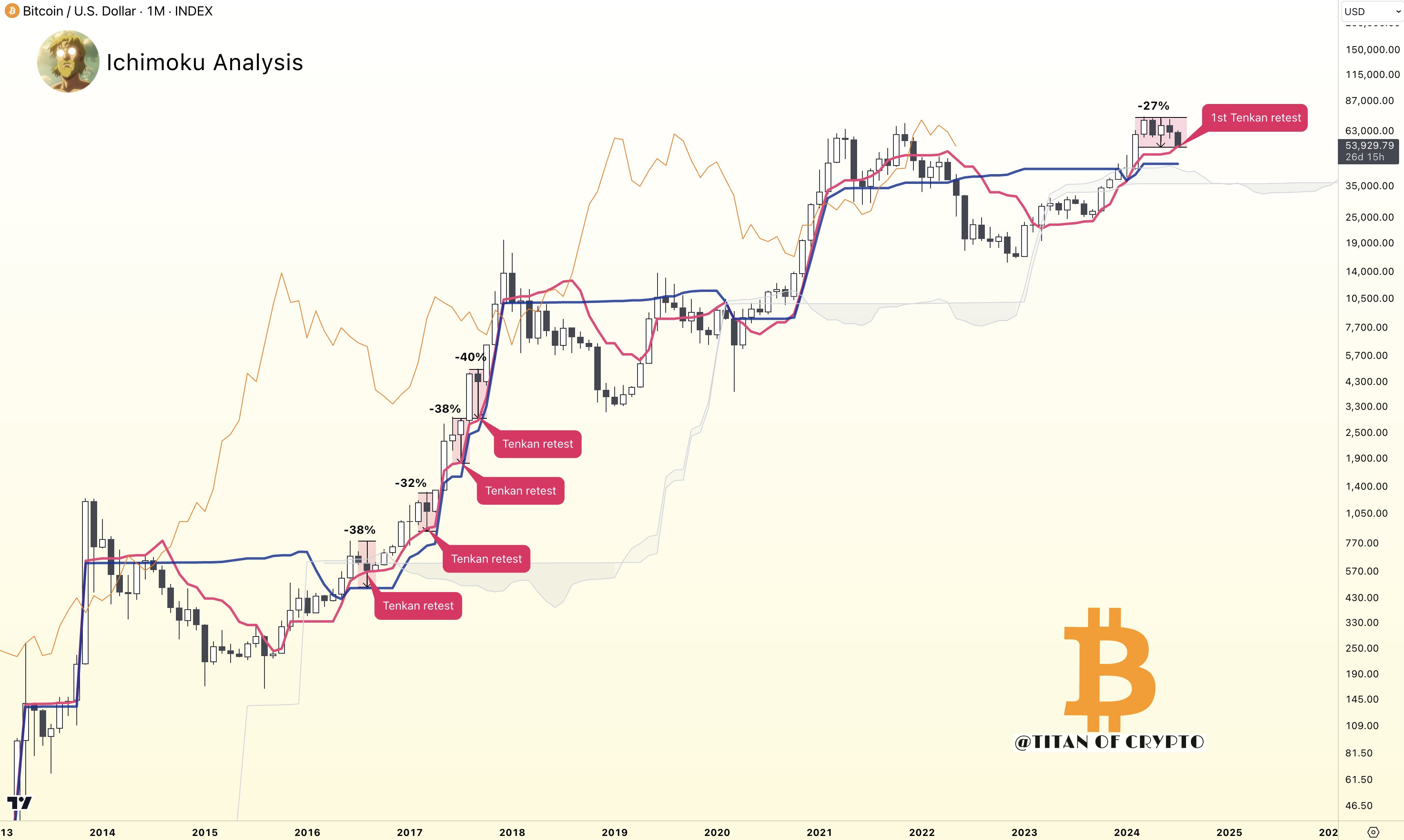 Bình luận về bối cảnh này, nhà giao dịch nổi tiếng Titan of Crypto cho rằng việc đóng cửa dưới Kijun Sen trên khung thời gian hàng tháng sẽ đòi hỏi phải xem xét lại cấu trúc thị trường tăng giá nói chung.