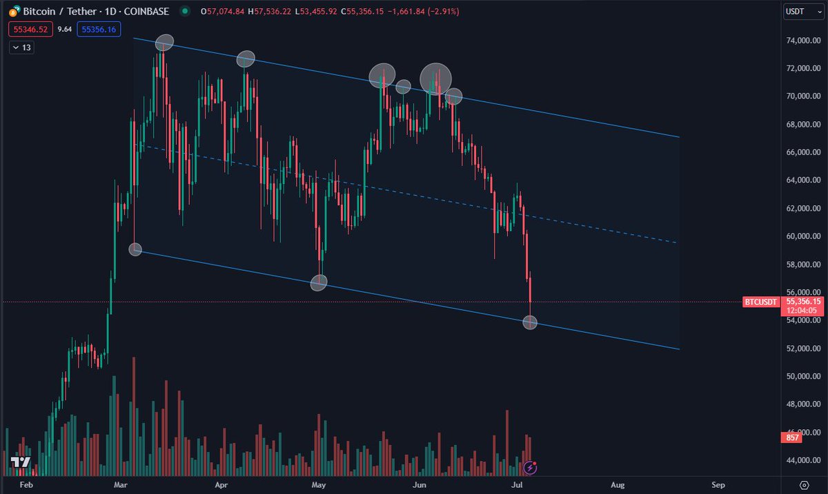Daan Crypto Trades lưu ý rằng BTC/USDT tiếp tục tuân theo kênh xu hướng giảm rộng — điều mà ngay cả nhà giao dịch thận trọng khét tiếng Il Capo of Crypto cũng coi là một dấu hiệu đáng khích lệ.