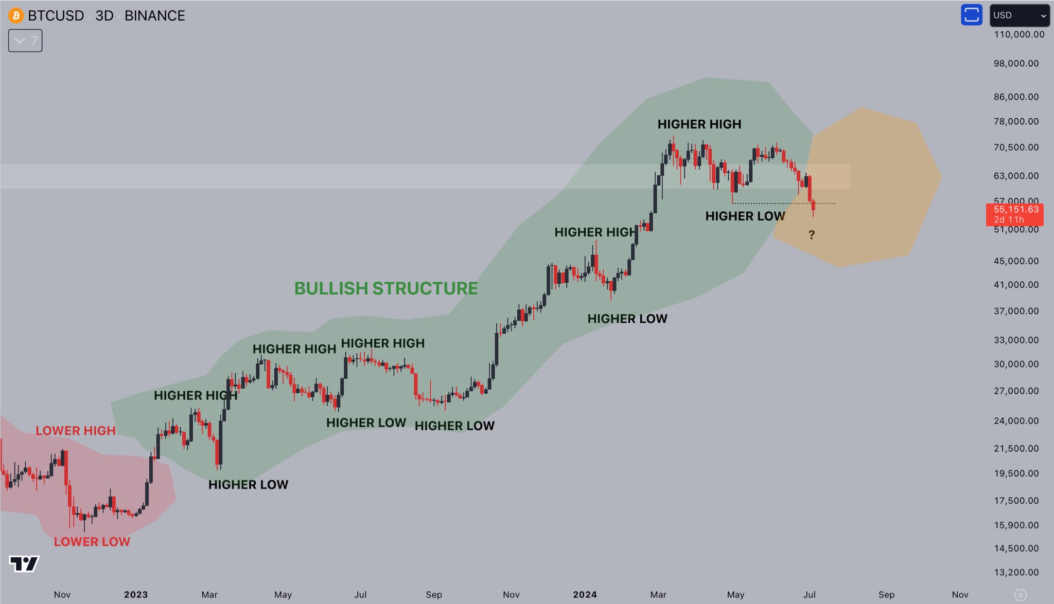 “Cấu trúc thị trường khung thời gian dài hơn của Bitcoin đang bị thử thách”, nhà giao dịch nổi tiếng Jelle thừa nhận khi phân tích biểu đồ ba ngày.