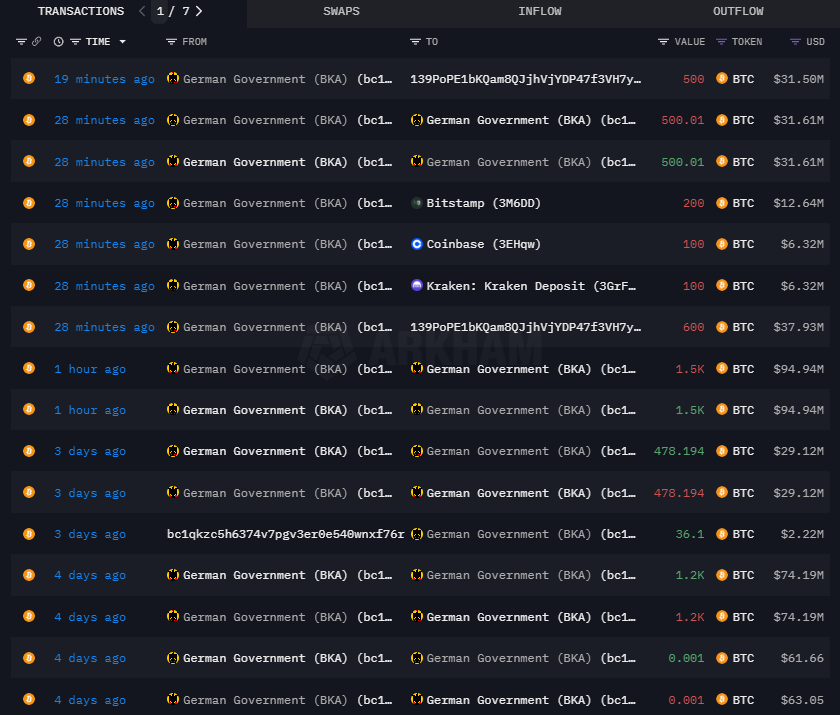 Theo dữ liệu từ nền tảng phân tích onchain Arkham Intelligence, chính phủ Đức đã chuyển 2.700 BTC sang nhiều sàn giao dịch trong hai tuần qua.