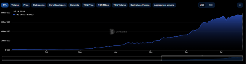 Những diễn biến này dường như đã thúc đẩy giá TON. Trong vòng chưa đầy 24 giờ, giá TON đã tăng khoảng 2,67%, từ 7,21 USD lên 7,31 USD. TON cũng đạt được mức giá trị tổng thể bị khóa (TVL) cao kỷ lục mới. Theo dữ liệu của DefiLlama, TVL của TON là 761,37 triệu USD tại thời điểm viết bài.