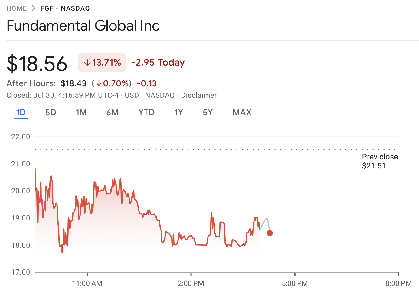 Giá cổ phiếu của Fundamental Global vào thứ Tư. Nguồn: Google Finance.