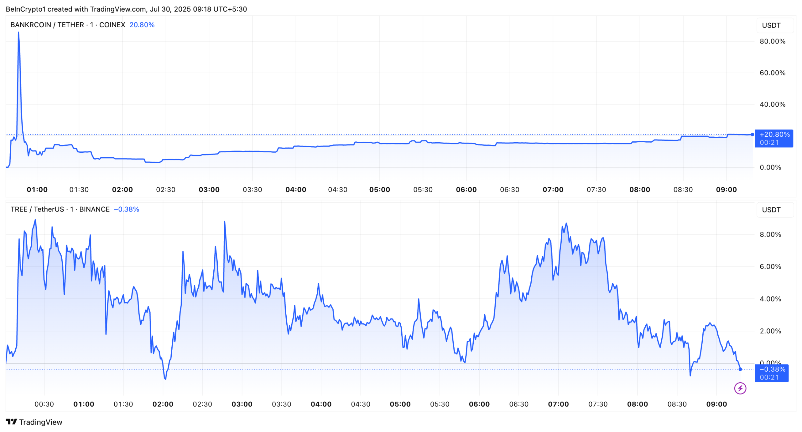 Đáng chú ý, Coinbase đã niêm yết TREE dưới nhãn “thử nghiệm”, báo hiệu những rủi ro tiềm ẩn liên quan đến sự biến động giá hoặc hồ sơ theo dõi hạn chế của nó. Trong khi đó, động thái của sàn giao dịch đã ảnh hưởng đến giá của cả hai altcoin.