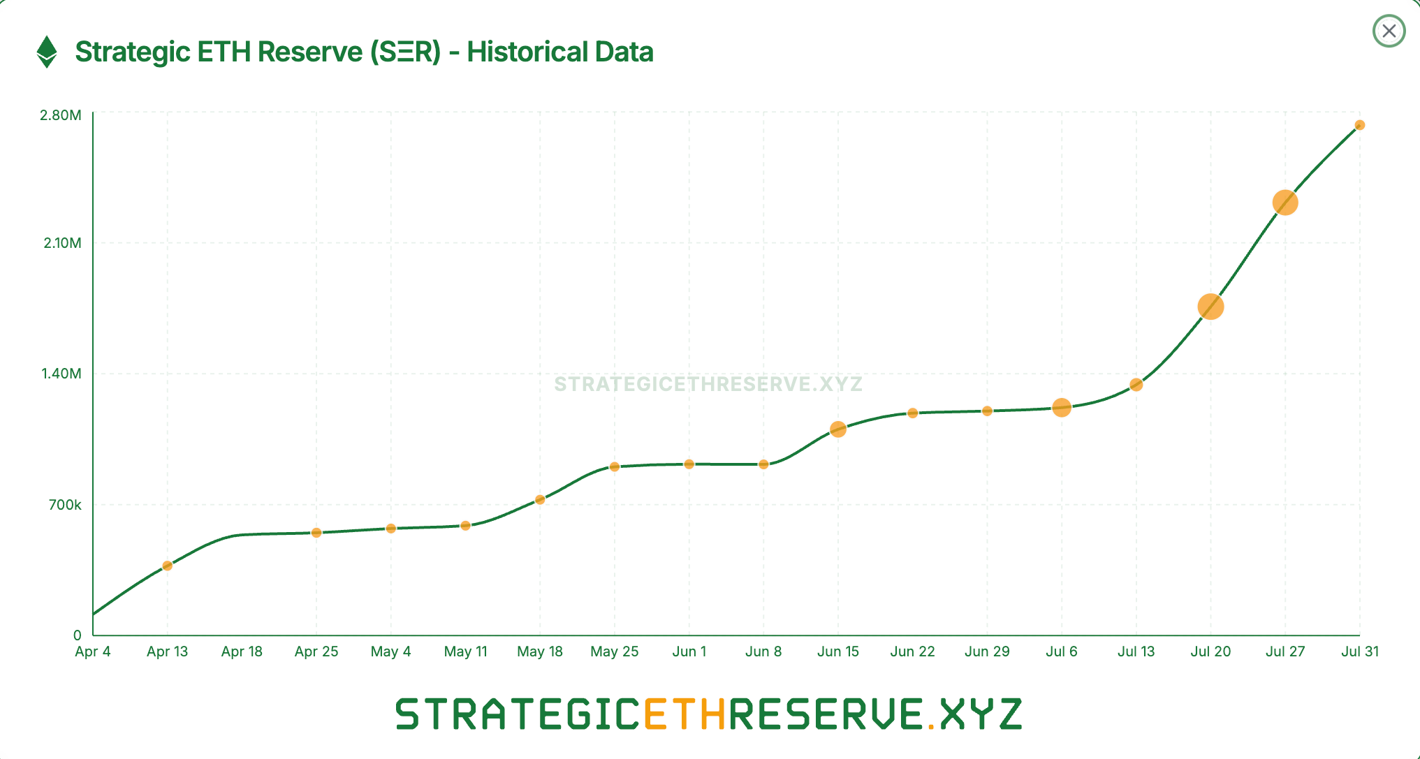 Theo dữ liệu mới nhất từ trang web Dự trữ ETH Chiến lược, vào đầu tháng 04, quỹ này chỉ nắm giữ 200 triệu USD, với lượng nắm giữ liên tục mở rộng. Tuy nhiên, xu hướng này đã tăng tốc khi ngày càng nhiều công ty công khai bắt đầu chấp nhận Ethereum như một tài sản dự trữ chính.