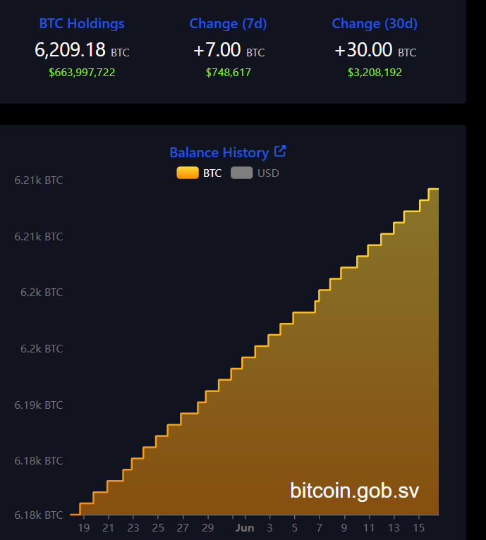 Tuy nhiên, đất nước này vẫn tiếp tục mua một BTC mỗi ngày, một chiến lược được Tổng thống Nayib Bukele đưa ra vào năm 2022.