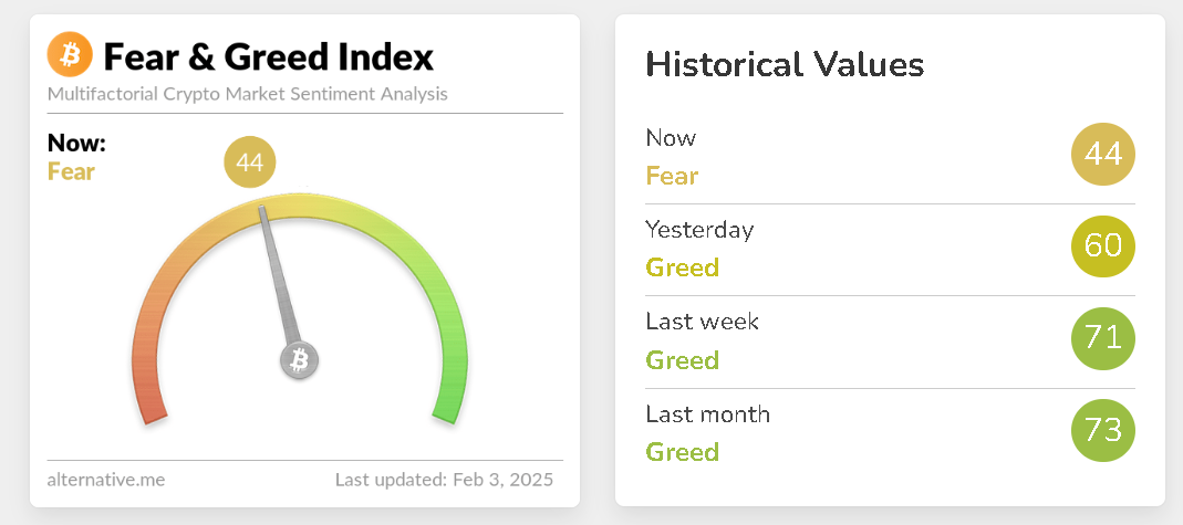 Tính đến ngày 3 tháng 2, tâm lý của các nhà đầu tư trên thị trường tiền điện tử đang ở mức “sợ hãi”, theo dữ liệu của Alternative.me.
