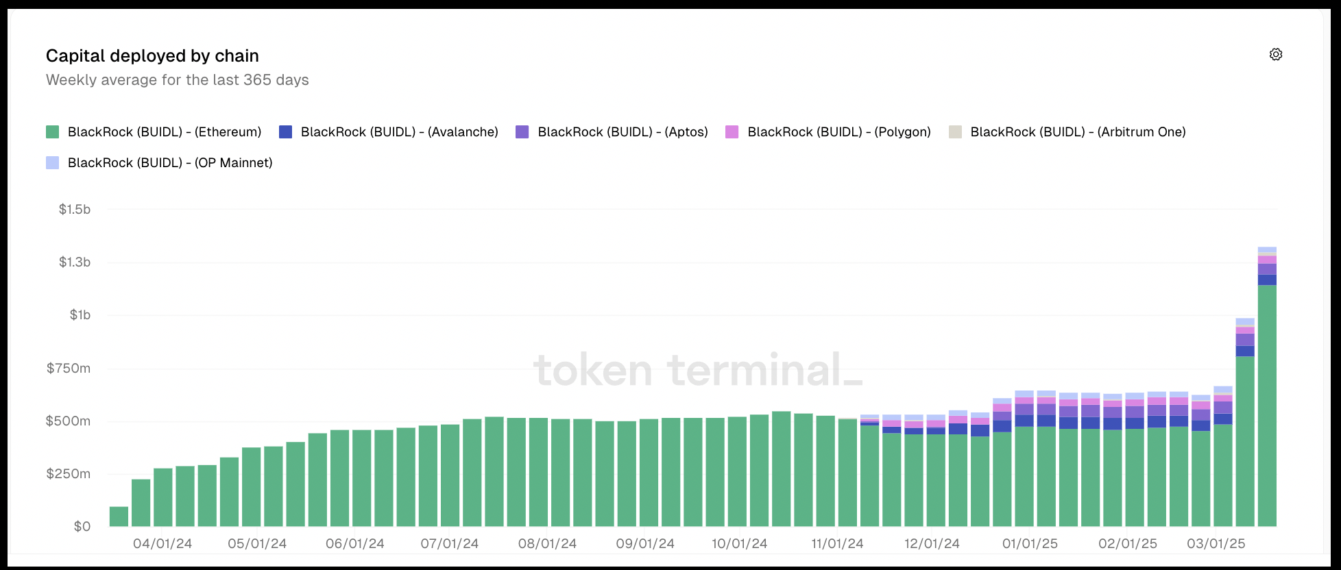 Theo dữ liệu từ Token Terminal, quỹ BUIDL của BlackRock hiện nắm giữ số Ether kỷ lục trị giá khoảng 1,145 tỷ USD, tăng từ mức khoảng 990 triệu USD của một tuần trước.