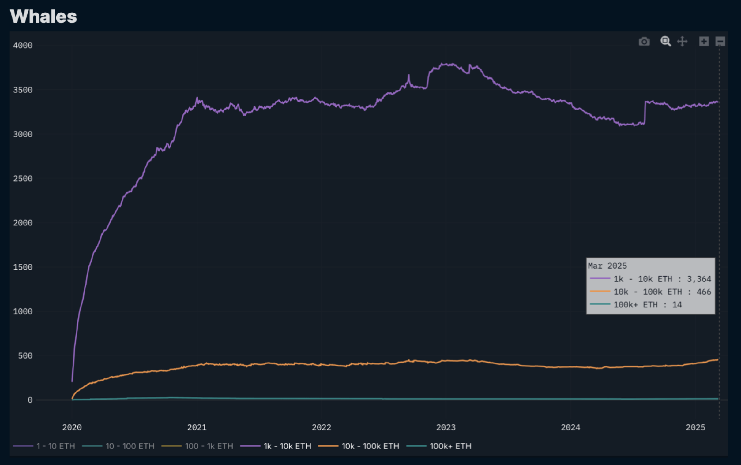 Mặc dù các địa chỉ nắm giữ hơn 100.000 ETH vẫn tương đối ổn định, xu hướng tích lũy này nhấn mạnh niềm tin ngày càng tăng của các nhà đầu tư lớn.
