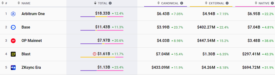 Arbitrum One và Base dẫn đến sự gia tăng giá trị L2 205%