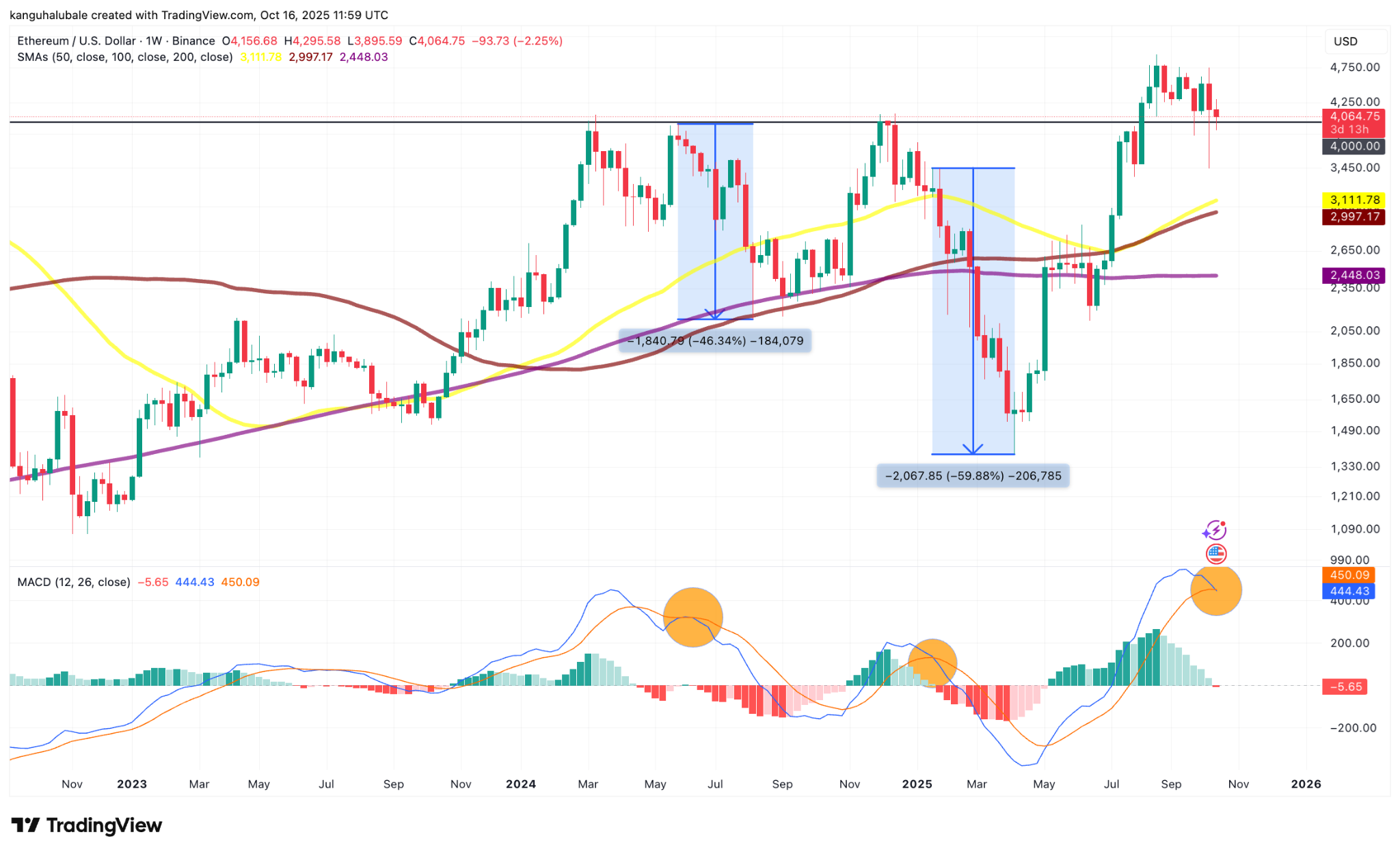 Các tín hiệu trước đó đã dẫn đến giá ETH giảm 46%-60%