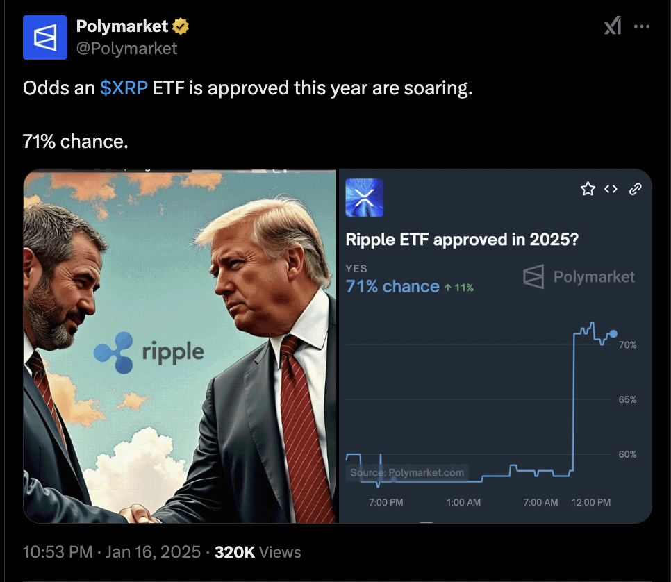 Ví dụ, một giải pháp tiềm năng cho vụ kiện đang diễn ra giữa SEC và Ripple dưới thời chính quyền ông Trump có thể mở đường cho việc phê duyệt và ra mắt XRP ETF spot tại Hoa Kỳ.