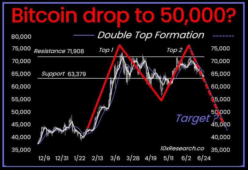Ngược lại với Novogratz, Markus Thielen, người sáng lập 10x Research, dự đoán Bitcoin sẽ thoát ra khỏi phạm vi hợp nhất và giảm xuống còn 50.000 USD, với lý do tiềm năng hiện thực hóa mô hình hai đỉnh.