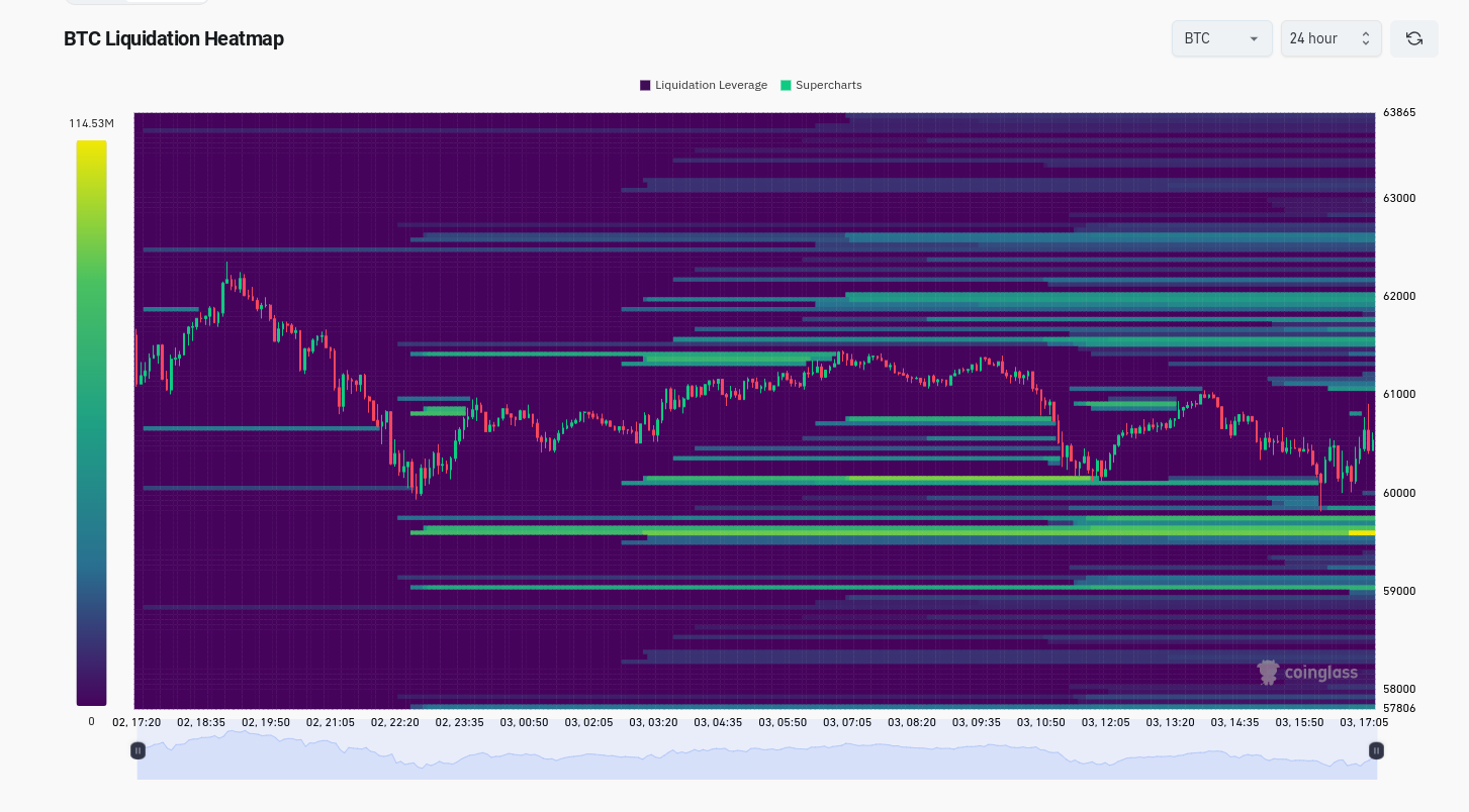 Khi xem xét tính thanh khoản của sổ lệnh, được trình bày bởi CoinGlass, cho thấy giá thầu tăng nhẹ xuống dưới mức 60.000 USD tại thời điểm viết bài.