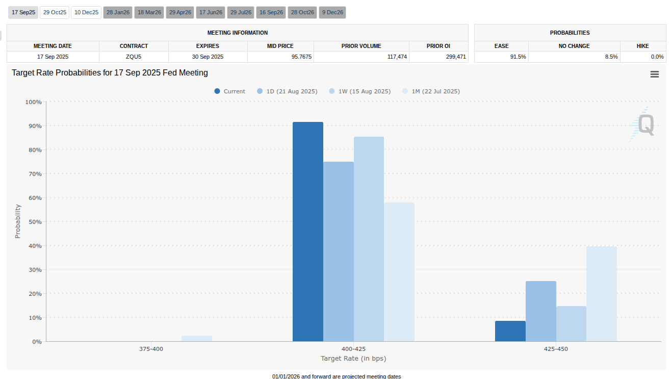 Kobeissi cho rằng Fed sẽ cắt giảm 25 điểm cơ bản, quan điểm này phù hợp với kỳ vọng của thị trường từ Công cụ FedWatch của CME Group.