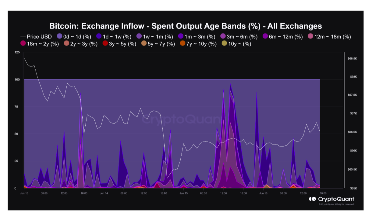 “40% số Bitcoin được gửi nằm trong phạm vi 3M-6M, 20% nằm trong phạm vi 6M-12M và phần còn lại là hỗn hợp”, cộng tác viên XBTManager đã viết trong một cập nhật thị trường “Quicktake” của CryptoQuant vào ngày 16 tháng 6.