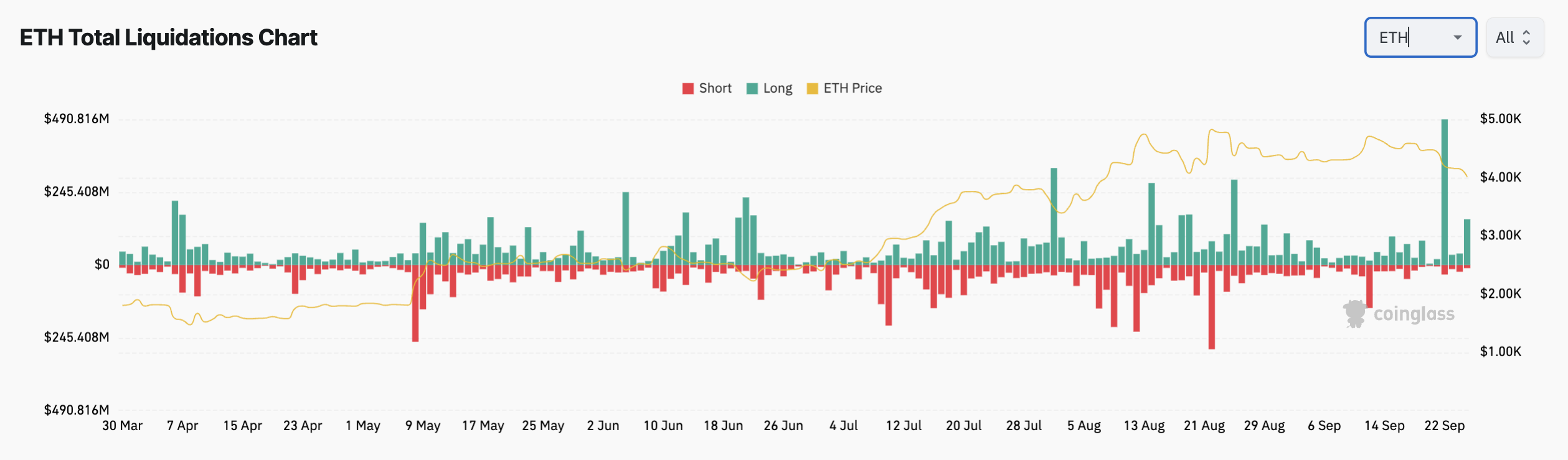 Biểu đồ thanh lý tổng số ETH. Nguồn: CoinGlass.
